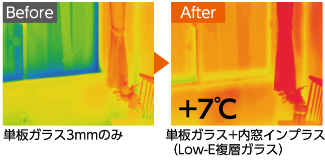 断熱ガラス3mmのみ → 二重窓設置後