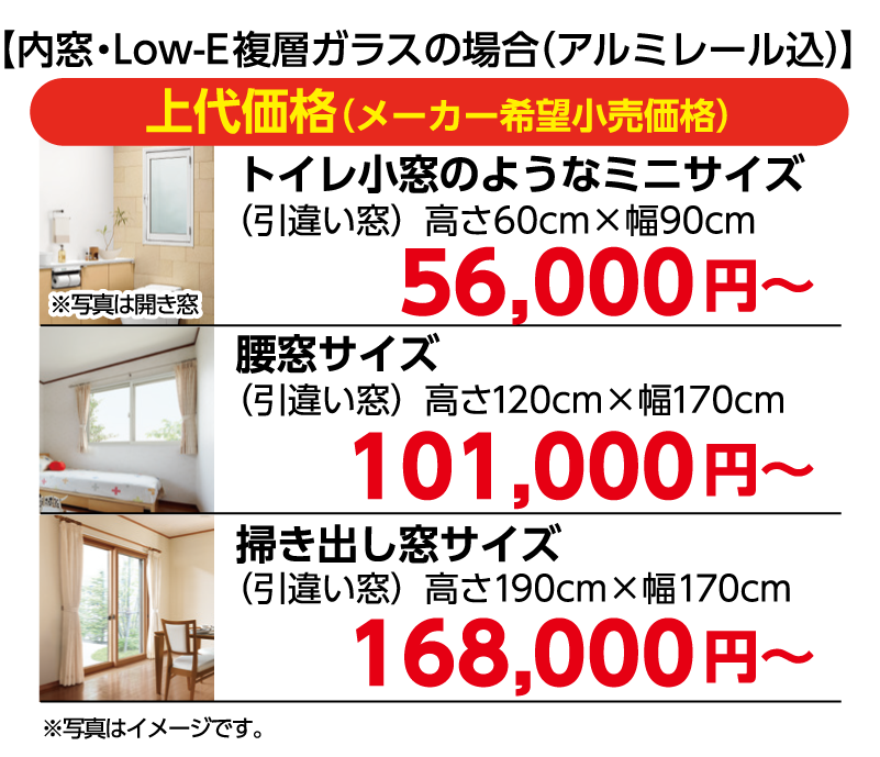 窓のサイズ 上代価格 補助金額
