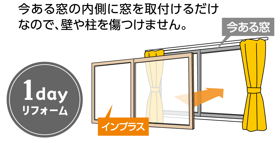 今ある窓の内側に取り付けるだけなので、