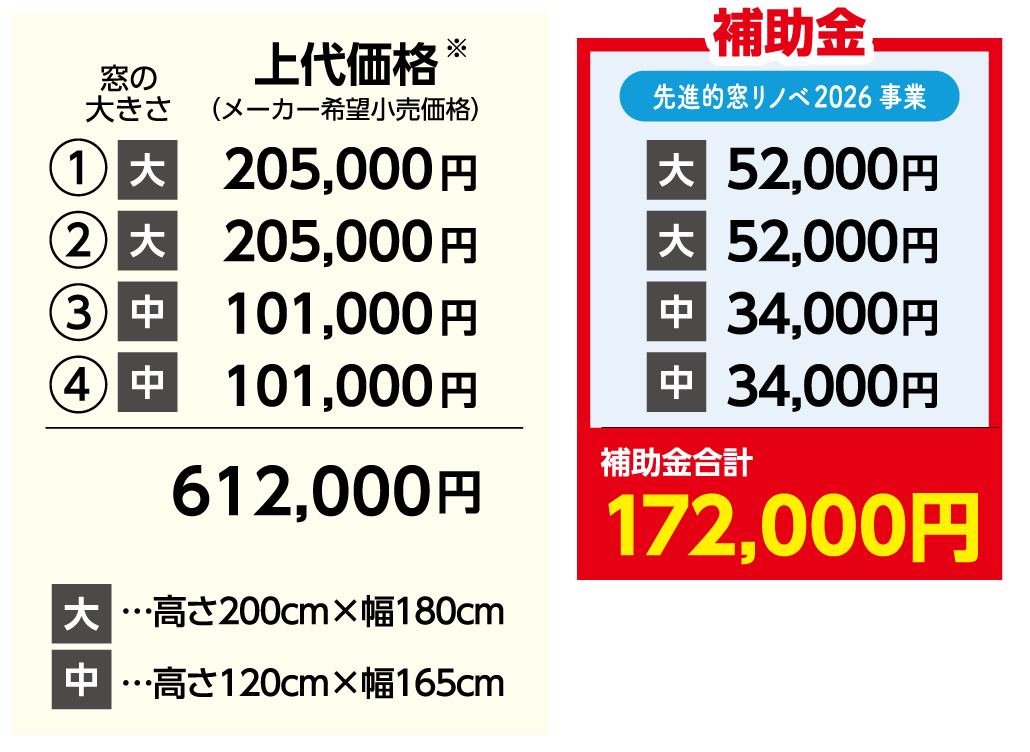 ※補助金を使えば、窓のサイズに応じて